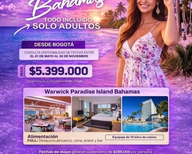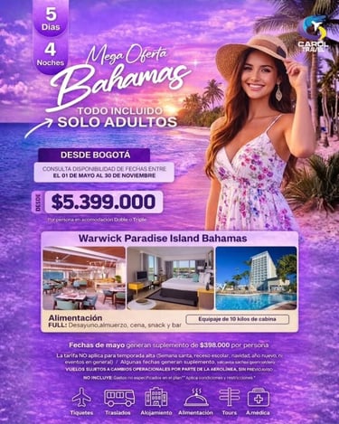 En Carol Travel convertimos tus ganas de viajar en experiencias reales, seguras y hechas a tu medida. Te acompañamos en cada paso, desde la planeación hasta tu regreso, para que solo te preocupes por disfrutar. Viajar no es un destino, es una historia… y la tuya comienza aquí.